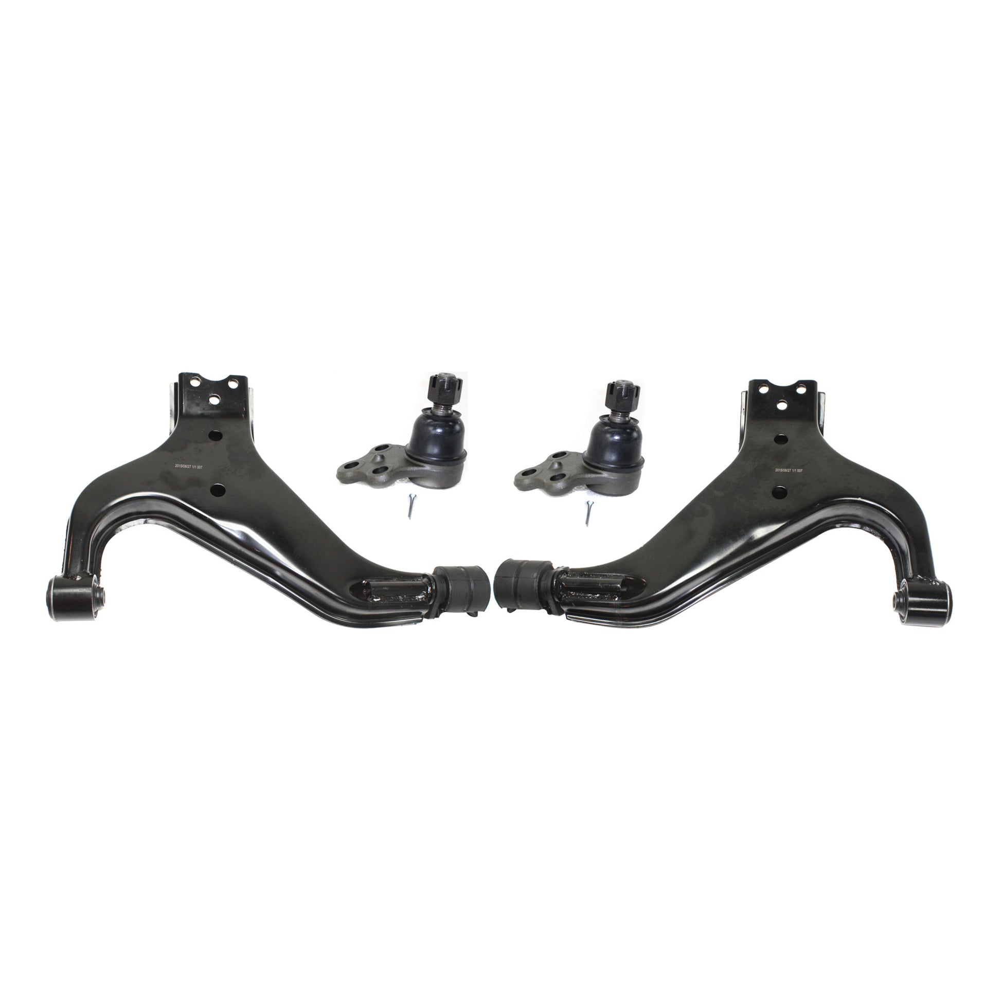 Комплект из 4 частей: передний, со стороны водителя и пассажира, комплект нижних рычагов подвески, включает (2) шаровых шарнира и (2) рычага подвески