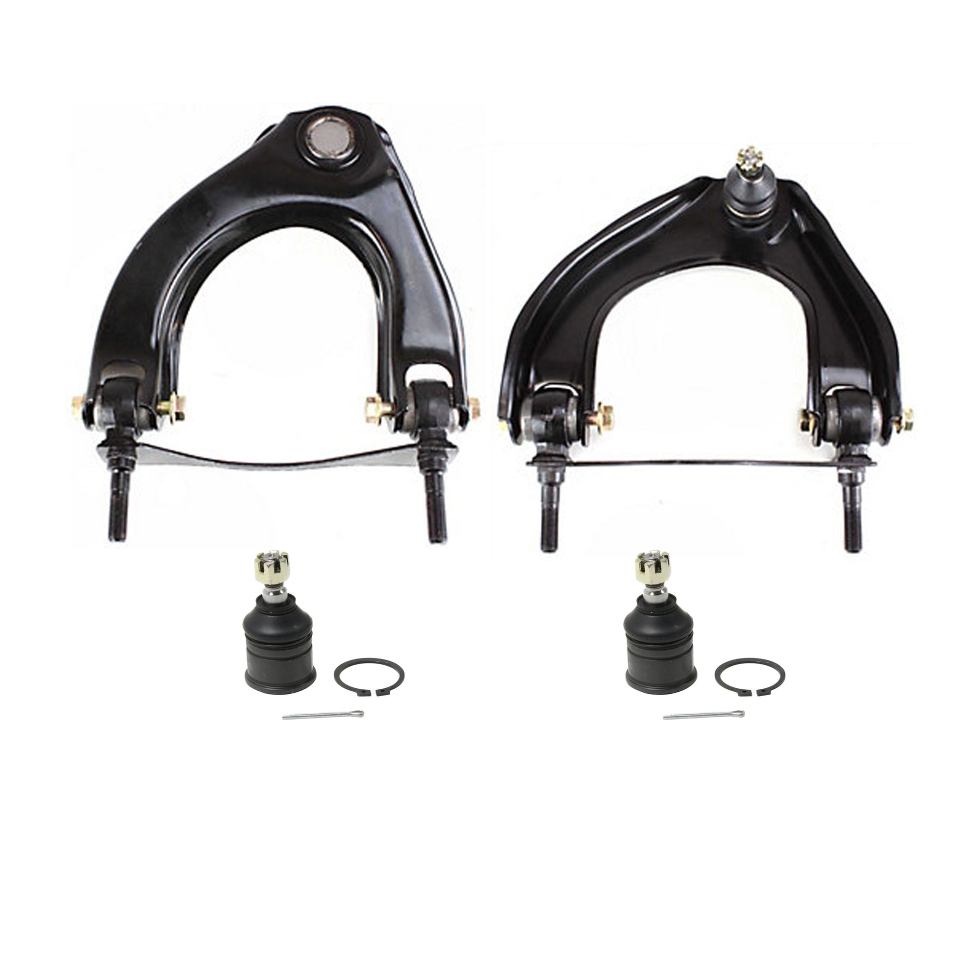 Комплект из 4 частей: передний, со стороны водителя и пассажира, комплект верхних рычагов подвески, включает (2) шаровых шарнира и (2) рычага подвески